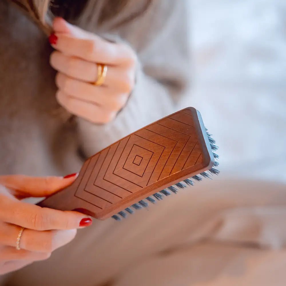 Bürstet man das Haar regelmäßig, reinigen die Wildschweinborsten das Haar, versorgen es mit wertvollen Nährstoffen und reparieren die Haarstruktur.
